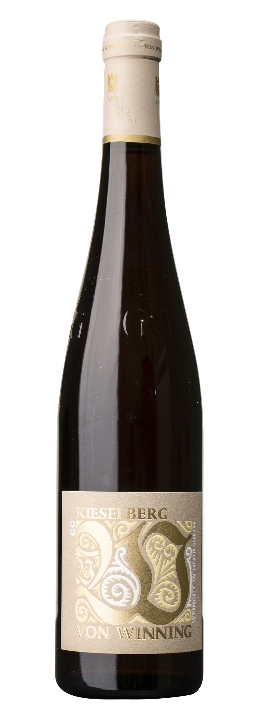 Seit mehr als 200 Jahren hat der Kieselberg den Ruf, zu den besten Lagen der Pfalz zu gehören, und das auch offizielle, denn so stufte die bayerische Bodenklassifikation von 1828 den Kieselberg ein. Und doch ist der Weinberg nicht so bekannt wie beispielsweise der Langenmorgen oder das Kirchenstück. Er umfasst heute 15,7 Hektar, von denen 12 für Große-Gewächs-Rieslinge klassifiziert sind und zieht sich ganz sanft mit einer Neigung von drei bis höchstens 15 % von 145 auf 180 Meter Höhe. In gewisser Weise bildet die Lage, die von Buntsandsteinverwitterungs- und Kalkböden mit teils faustdicken Sandsteinen und einer Kieselauflage, die dem Weinberg den Namen gegeben hat, geprägt ist, ein Hochplateau über Deidesheim. Wie alle Großen Gewächse wurde auch der Kieselberg bei von Winning spontan in tonneaux vergoren und dort anderthalb Jahre lang auf der Hefe ausgebaut (20 % Neuholzanteil). Die Erntemenge ist eher klein ausgefallen, da nach viel Regen im August die Trauben im September 2023 extrem streng selektiert wurden, um nur mit perfektem Lesegut zu arbeiten. Dafür sind in diesem Jahr Rieslinge entstanden, die leichtfüßig und elegant, charmant und offen wirken.